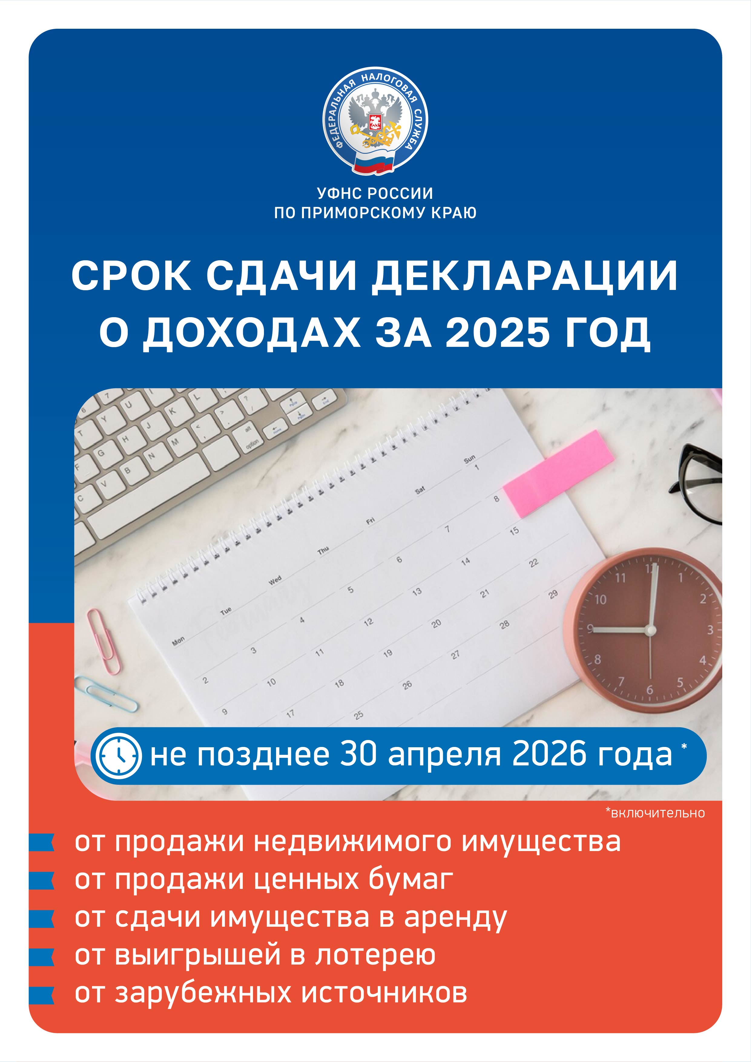 Срок подачи декларации о доходах за 2025 год