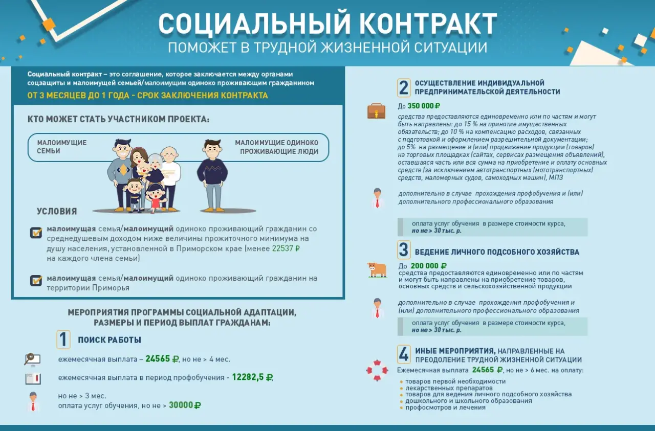 Социальный контракт — это поддержка для малоимущих семей и одиноко проживающих граждан, направленная на улучшение финансовой ситуации.